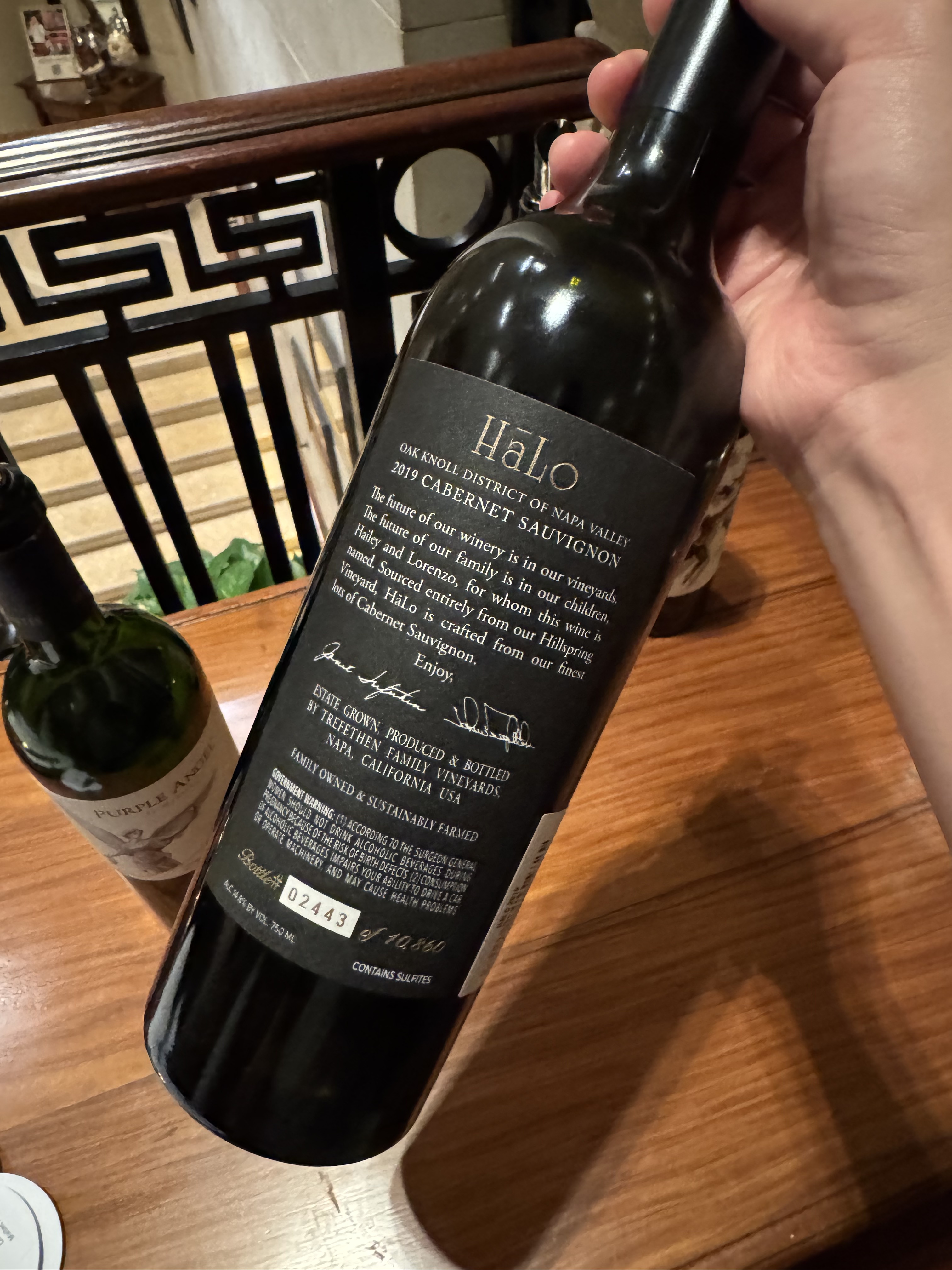 來自 Hillspring Vineyard 精選葡萄,以 Cabernet Sauvignon 為主,混入少量 Petit Verdot 及 Malbec。名稱 HāLo 以長音 ā 標示(意指莊主對詞語的敬意),並以 Oak Knoll District 農業遺產為設計靈感。於橡木桶培養後裝瓶,風格經典、老派 Napa。